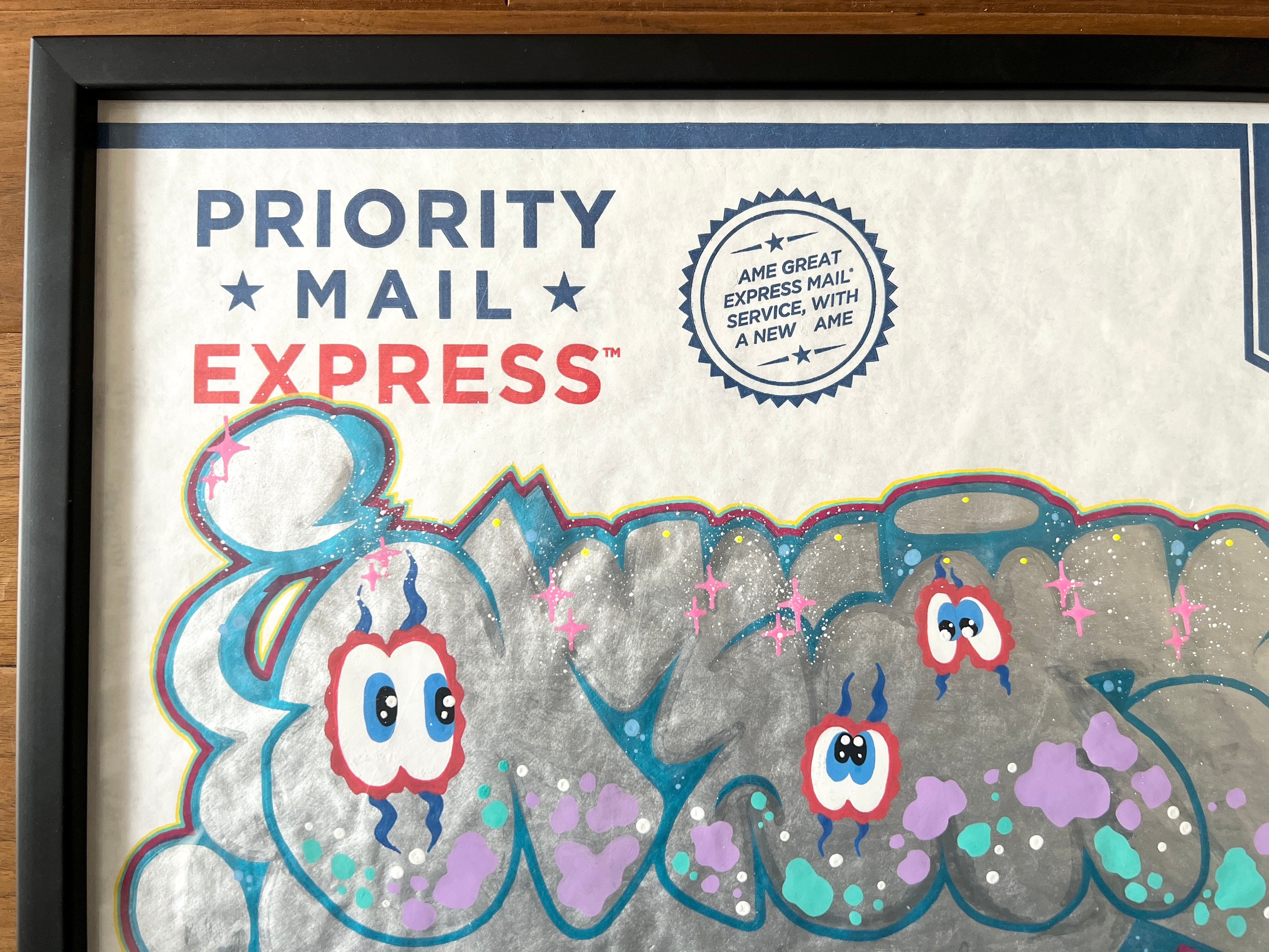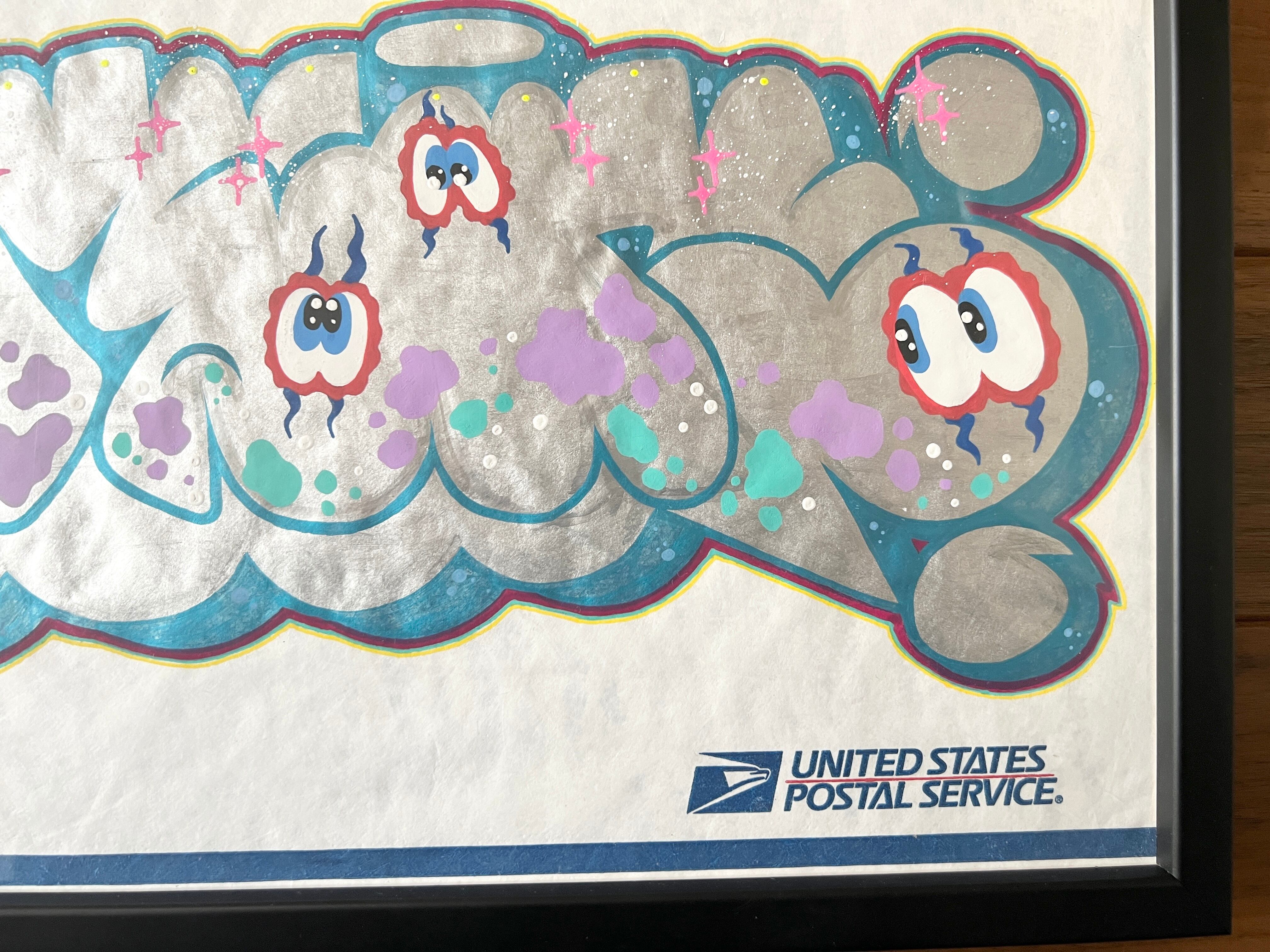 ステッカーでお馴染みユナイテッドステイツ オブ アメリカの郵便局ステッカーではなく、あまり見かけた事がないレアな大判の台紙に説明不要のAMES氏が描き込んだ作品になります。
